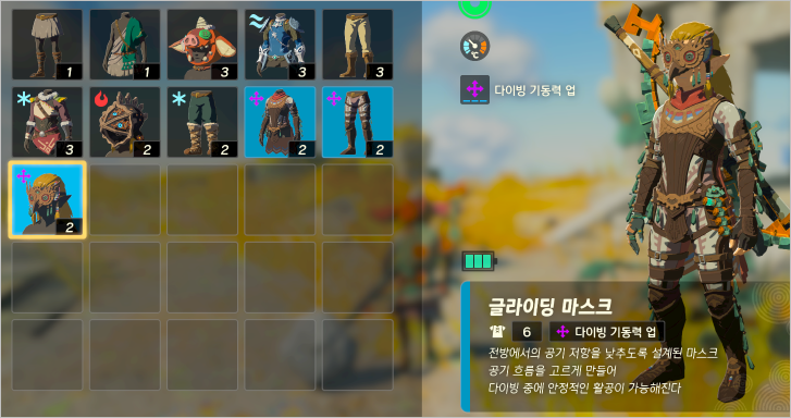 이번 작품의 가장 특색있는 방어구라면 역시 글라이딩 세트일 것입니다.