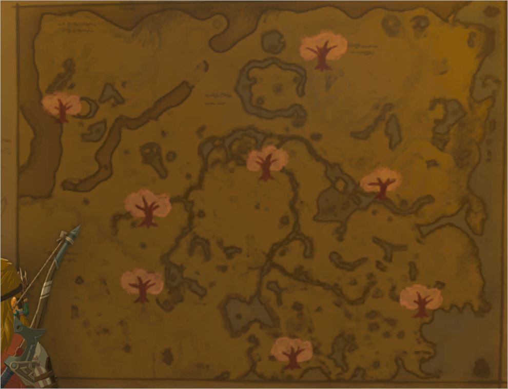 You will encounter a beautiful cherry tree on a mountain during your exploration of the tears of the kingdom of Zelda. There is an offering dish under that tree. If you put an apple or fruit in that dish, it will show you the location of all the caves in that area.