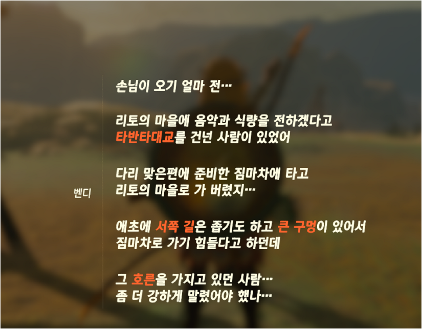 고원의 마구간에서 피리스의 위치에 대해 2명의 NPC가 힌트를 주는데, 노인이 주는 힌트가 플레이어를 혼란스럽게 한다.