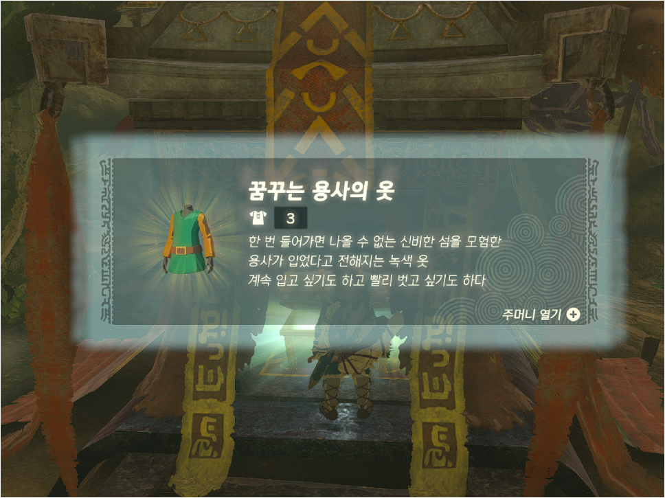 젤다 왕국의 눈물에는 과거 젤다 시리즈의 링크가 입었던 방어구들이 나옵니다.