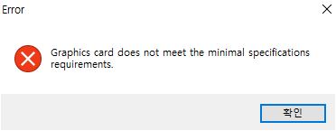 그래픽카드 사양이 충분함에도 불구하고 아래와 같은 그래픽카드 최저 사양 미달 오류가 발생하는 경우가 있습니다.