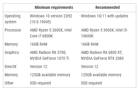 스타필드 그래픽카드 최저 사양은 Geforce 기준 1070Ti, Radeon 기준 RX 5700 이라서