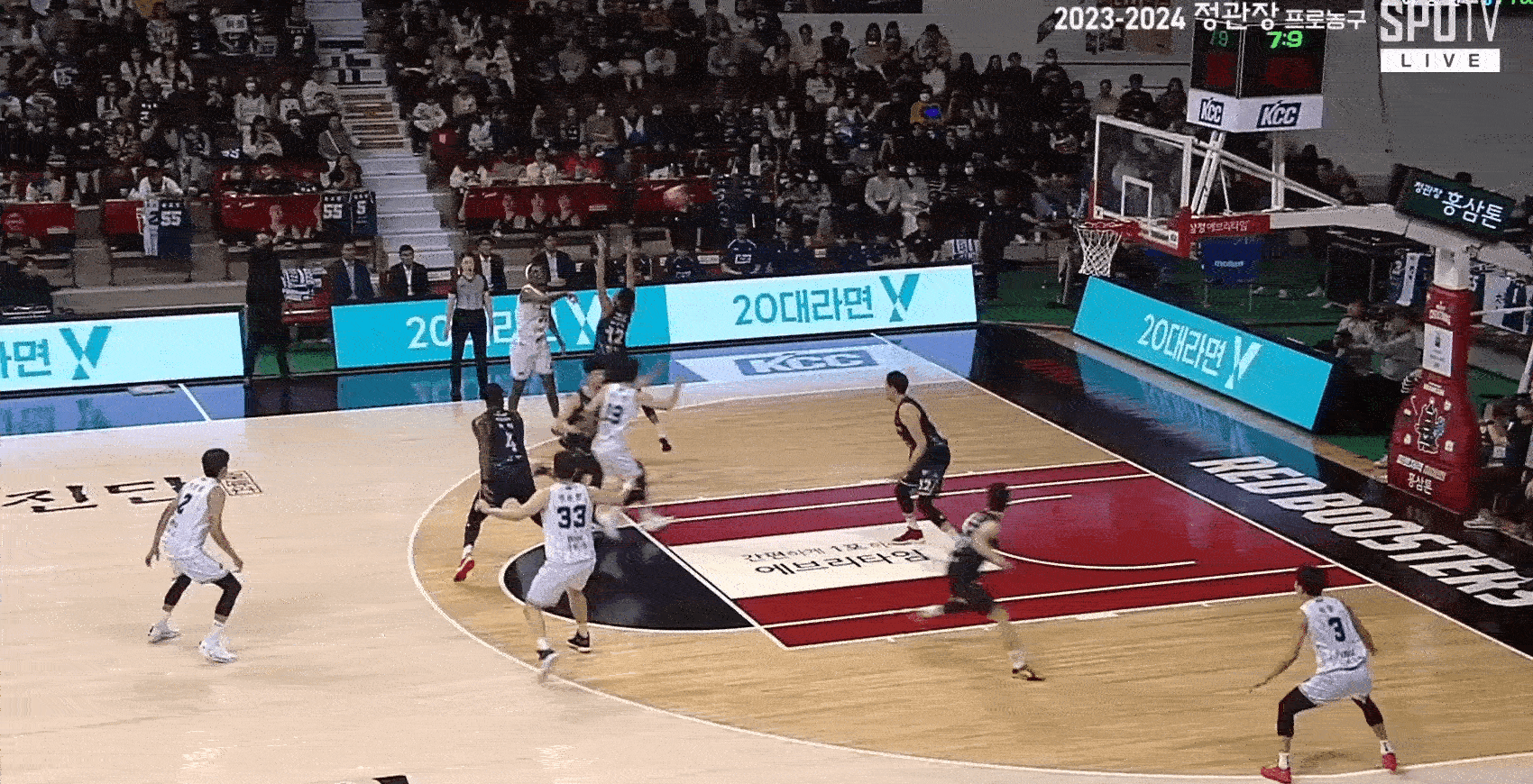 새로 영입한 카터는 내외곽에서 준수한 공격을 갖고 있었으나 높이가 낮아 라건아와 알리제의 공격을 제어하지 못했다.
