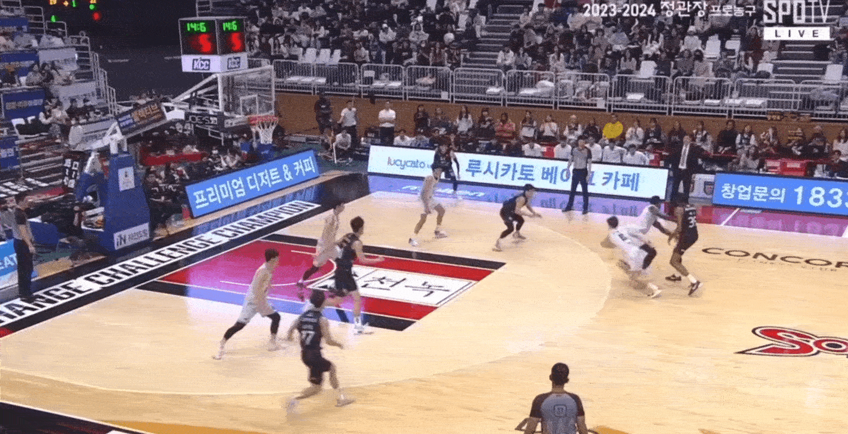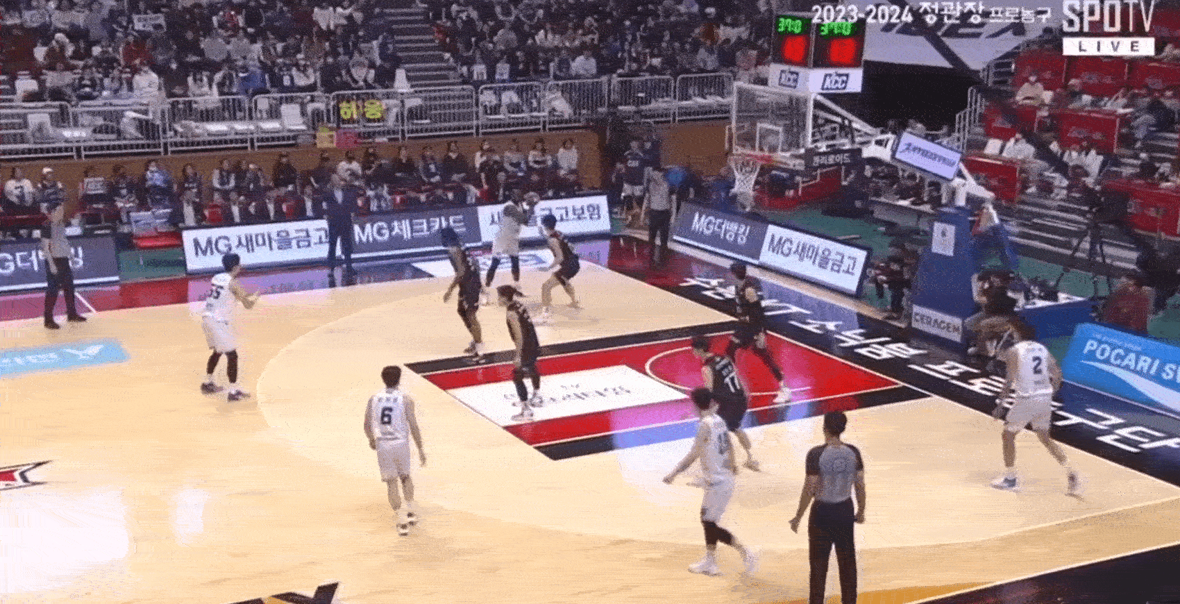 허웅의 노룩 패스를 성공시키는 알리제