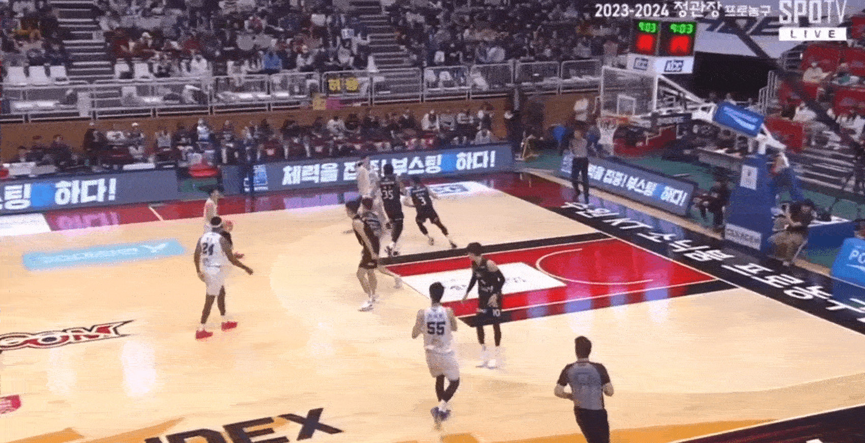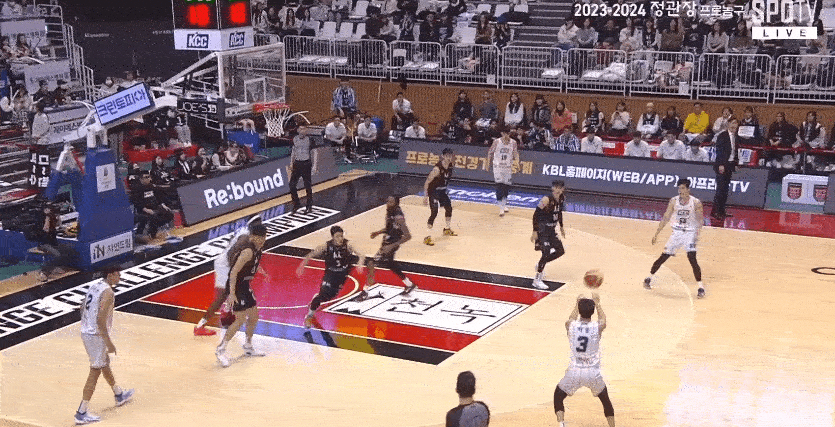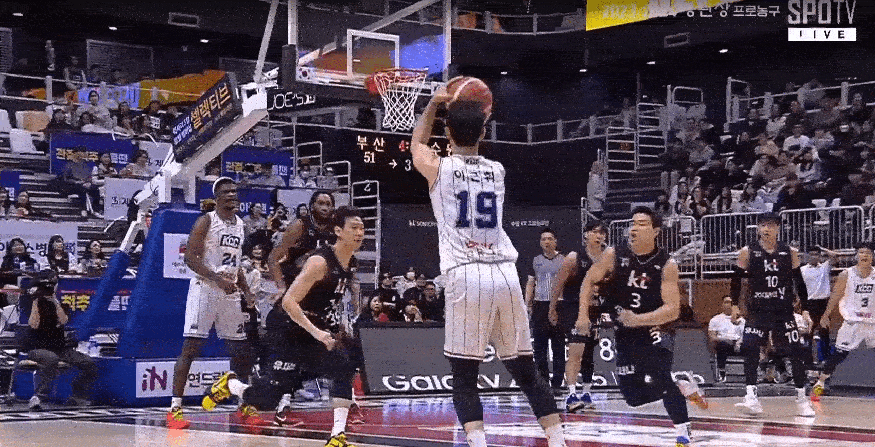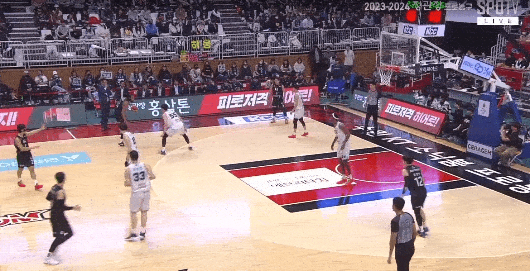 배스의 쇼다운 3점, 3점 쏠 것을 알지만 알리제도 막을 수 없었다 배스가 3점을 던질 수 있으니 KCC의 빅맨이 외곽으로 끌려 나오게 된다