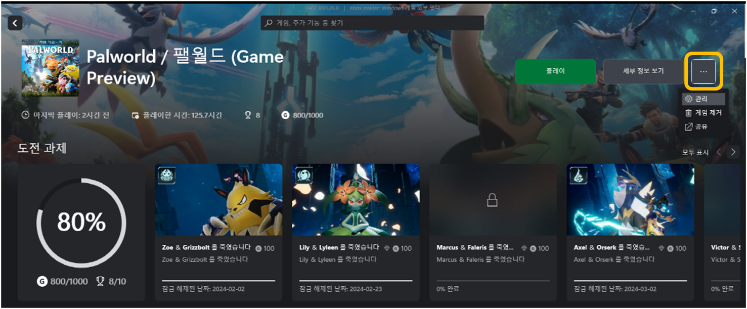 - XBOX(PC) 앱의 라이브러리에서 '관리' 선택