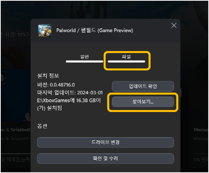 팰월드가 설치된 폴더의 위치를 찾는 방법은 다음과 같아요.