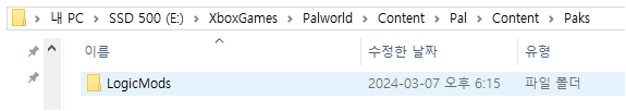 그리고 'LogicMods' 폴더 하위에 아까 복사해 둔 모드 파일을 붙여넣기 해주세요.