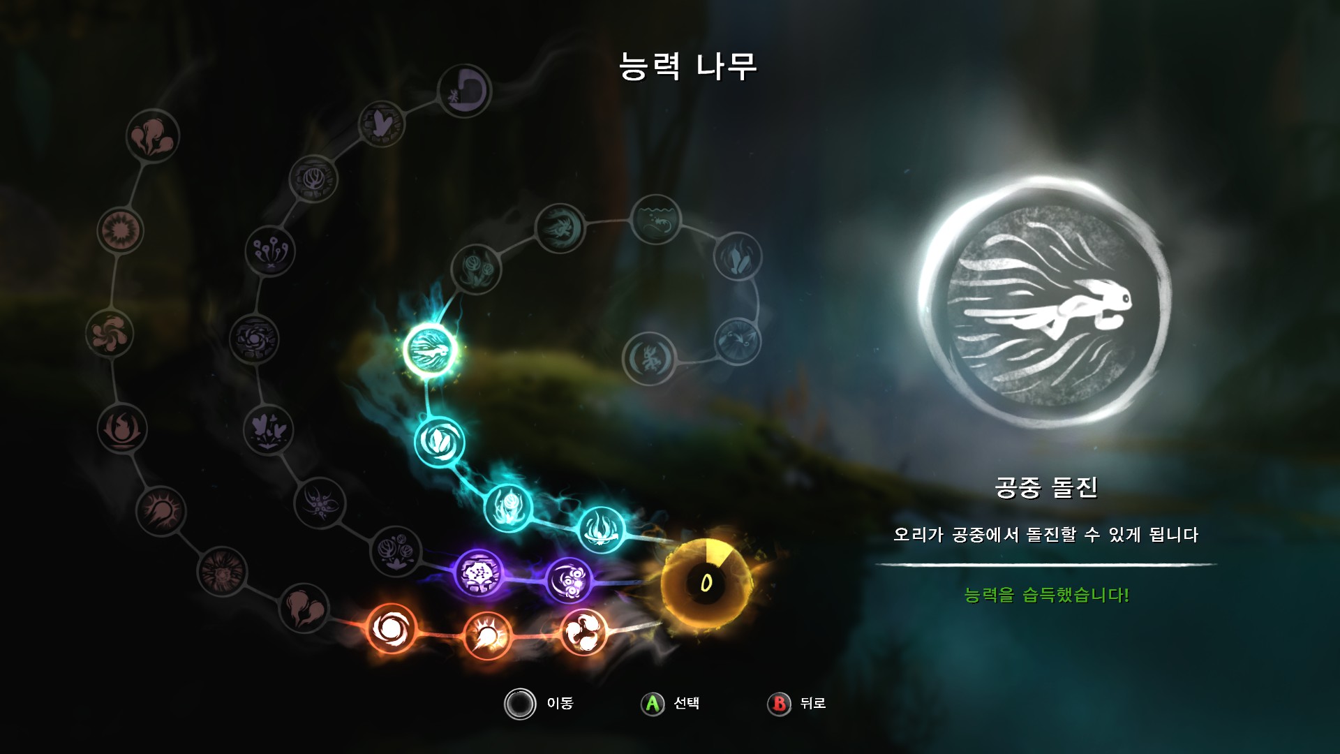 오리와 눈먼 숲을 하다가 공중 돌진 스킬을 찍었습니다.