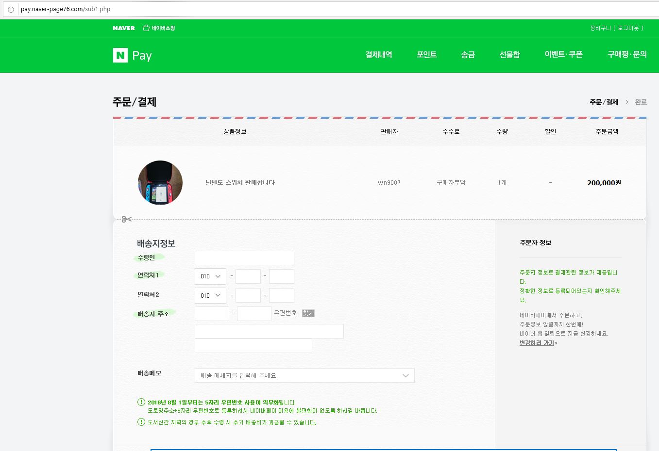 5. NPAY를 클릭하면 NAVER 로그인 창이 나오는데 이 역시 가짜입니다.