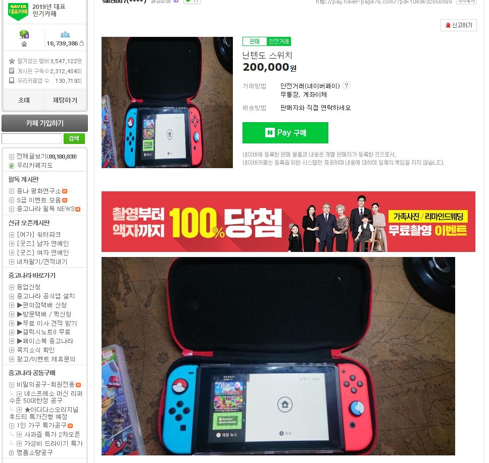 스위치 중고거래를 예로 말씀드리겠습니다.