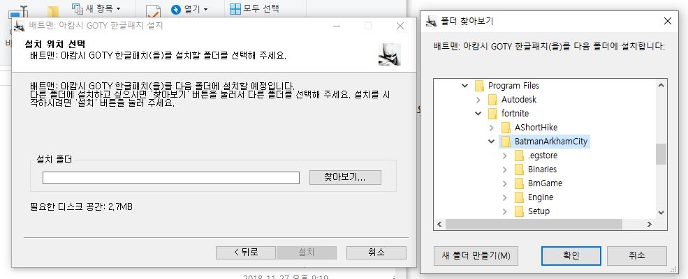 배트맨 아캄시티의 한글 패치 작업은 다음의 순서를 따라 주세요. 스팀과 에픽 플랫폼 모두 동일한 방법입니다.