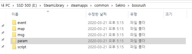 * 이 'param' 폴더를 복사하여 저 위에 3.에서 진행했던 'bossrush' 폴더 안에 붙여넣기 하여 덮어쓰기를 합니다.