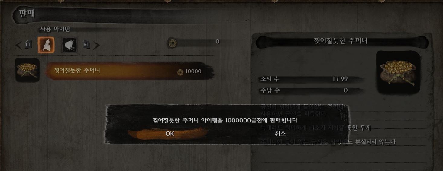 b. 이 동전 주머니를 사용하지 마시고 황폐한 절의 귀불에서 파세요. 1,000,000원을 줍니다.