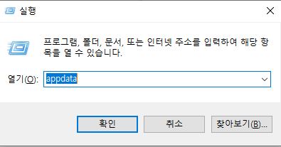 * 윈도키+R을 눌러 '실행'창을 호출하고, 'appdata'라는 키워드를 입력합니다.