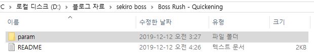 * 압축을 풀면 'Boss Rush - Quickening' 폴더가 생성되고 그 폴더 안에 'param'이라는 폴더가 있습니다.