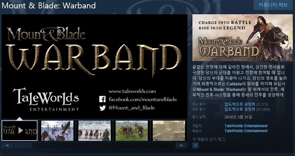 마운트 앤 블레이드 시리즈 중 가장 재밌는 것으로 평가받는 워밴드(Warband)는