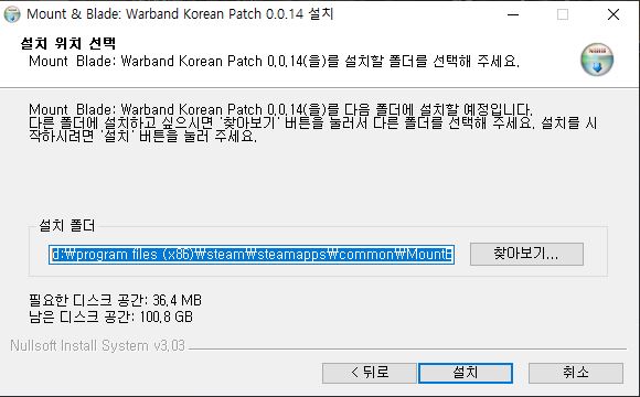 * 실행 파일명: mnb_warband_ko_patch_0.0.14