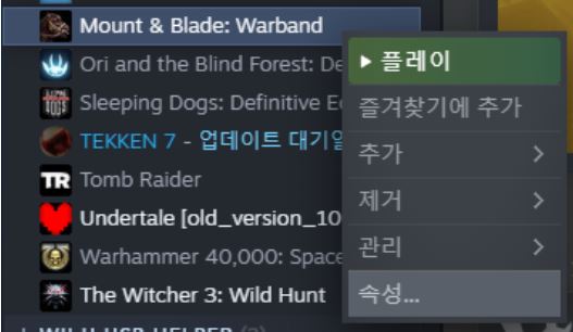 - 스팀 라이브러리의 '마블 워밴드'에서 마우스 우클릭