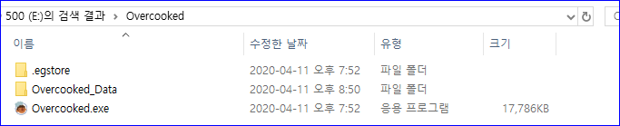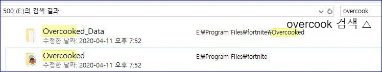 * 탐색기의 검색창에 'overcooked'라고 키워드를 넣어 설치 폴더를 찾습니다.