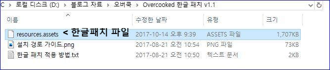 ▽ 오버쿡이 설치된 경로(폴더)에 ▽ 한글패치 파일을 다운로드받아 복사해 넣으면 됩니다.