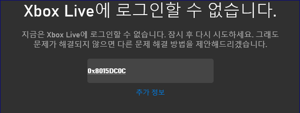 Xbox 앱을 처음 설치 후 마이크로소프트 계정으로 로그인을 할 때 아마도 아래와 같은 오류를 만나게 되실 거예요.