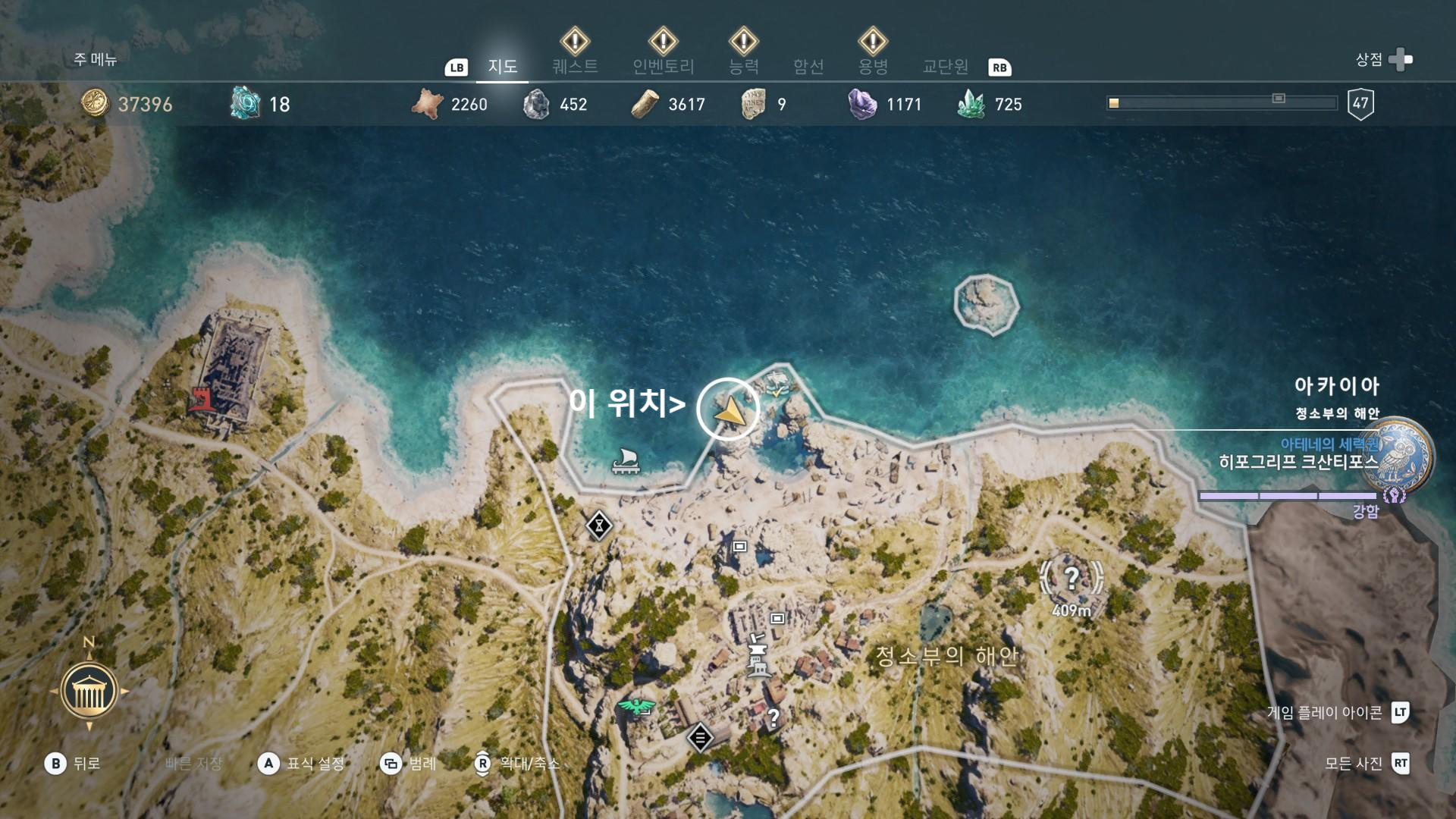교단원 힌트를 읽어보면 아카이아 지역의 '청소부의 해안'에 그 단서가 숨어있다고 쓰여 있는데요.