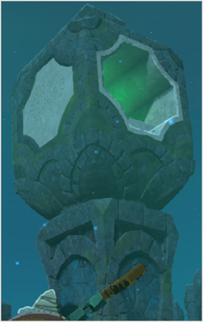- 첨탑 상층부에 빠르게 도는 직육면체의 한 면이 열려 있다.